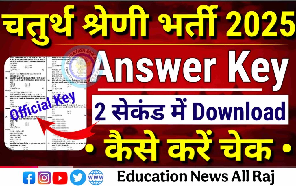 राजस्थान चतुर्थ श्रेणी भर्ती परीक्षा 2025 की ऑफिशियल आंसर key का लगभग सभी छात्रों को बड़ी बेसब्री से इंतजार था आज रात 18.10.2025 को रात 12 बजे के पास 4th ग्रेड भर्ती की ऑफिशियल आंसर key जारी कर दी है जिसको डाउनलोड लिंक आपको नीचे दी गई है। लेकिन उसके लिए आपको ऑफिशल मास्टर Qustion पेपर से मैच करना होगा उसके बाद ही अपनी आंसर key मिला सकते हो ओर ऑफिशल मास्टर Qustion पेपर की लिंक भी नीचे उपलब्ध करवाई गई है।